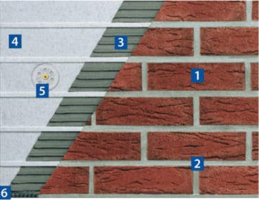 Viele Vorteile sprechen für das Fassadensystem: die große Auswahl an Klinkerfarben und Typen die Sicherung der Hauswand vor thermischen Rissen, vor Frostschäden, Feuchtigkeit und Schlagregen. Das Klinkersystem lässt sich ohne Untergrundbehandlung auf jeder Hauswand aufbringen. Es hält Generationen und erfordert keine Pflege, das spart Geld für unnötige Renovierungsarbeiten. Die Dämmplatten haben je nach Ausführung einen K-Wert von 0,28 bis 0,32. Je kleiner der K-Wert, desto besser der Wärmeschutz und umso geringer die Heizkosten. Die Dämmplatten der Stärken 20, 40, 60, 80 bis 200 Millimeter werden im Punktklebeverfahren ausgeglichen, durch den umlaufenden Schutzfalz entstehen zudem keine Kältebrücken mehr. Die Fugen sind bereits auf den Dämmplatten vorgefertigt.